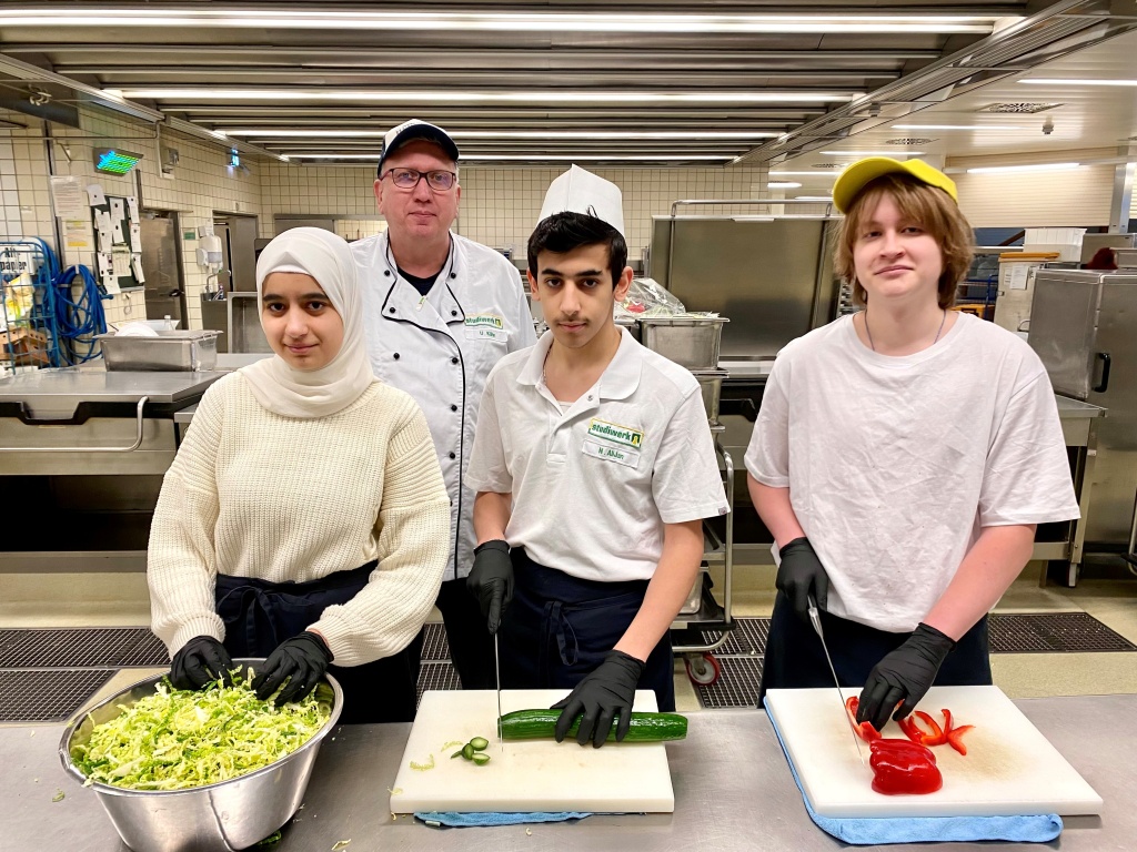 Einen wichtigen Meilenstein auf dem Weg zur Berufsvorbereitung haben junge Migranten aus Syrien und der Ukraine bei einem zweiwöchigen Praktikum in der Studiwerk-Mensa absolviert. „Mir hat die Arbeit mit den Köchen sehr viel Spaß gemacht und ich habe viel gelernt“, so lautet das Fazit der Berufsschülerin Asmaa Othmann. Die 19-Jährige flüchtete vor fünf Jahren mit ihren Eltern aus Syrien. Gemeinsam mit drei weiteren Schülern an der Berufsbildenden Schule für Gestaltung und Technik (BBS GuT) haben sie als Praktikanten alle Arbeitsabläufe in der Campus-Gastronomie vom Studiwerk Trier kennengelernt und mitgearbeitet.