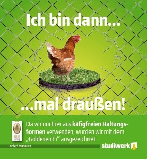 Bei der Auswahl unserer Produkte achten wir besonders auf regionale Angebote nach Saison und fair gehandelten Produkte. Bereits 2012 hat das Studiwerk als erstes Studiwerk in Deutschland einen Umweltpreis des Landes gewonnen; auch dafür, dass wir ausschließlich Eier aus käfigfreier Haltung und Fisch aus nachhaltiger Fischerei verwenden.